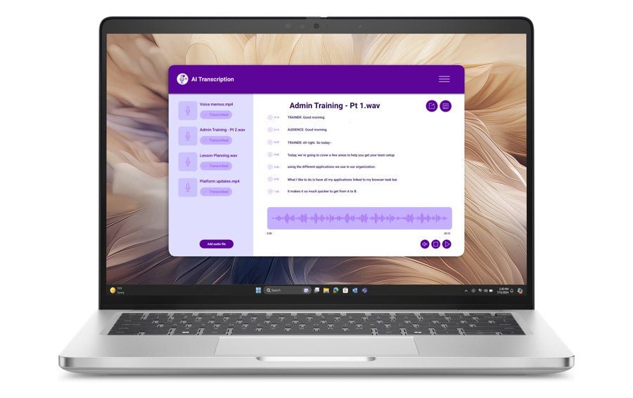 A built-in 5MP HDR camera and dual noise-canceling microphones enhance video conferencing experiences.
