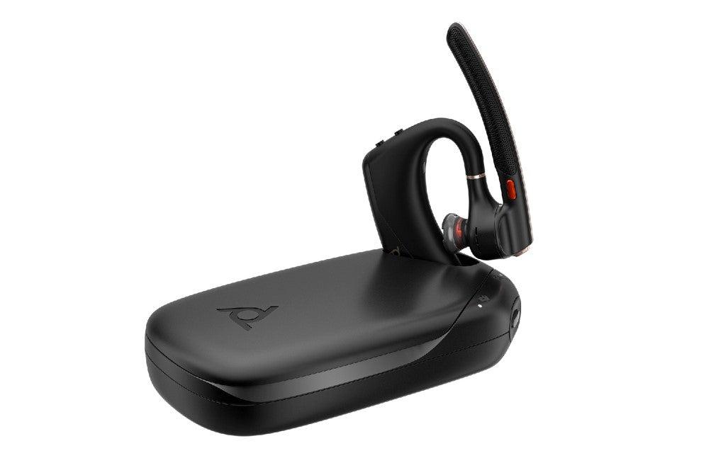 The Poly Voyager Legend 50-M UC headset features NoiseBlockAI technology, utilizing machine learning to identify and block out background noise, ensuring clear calls in various environments.